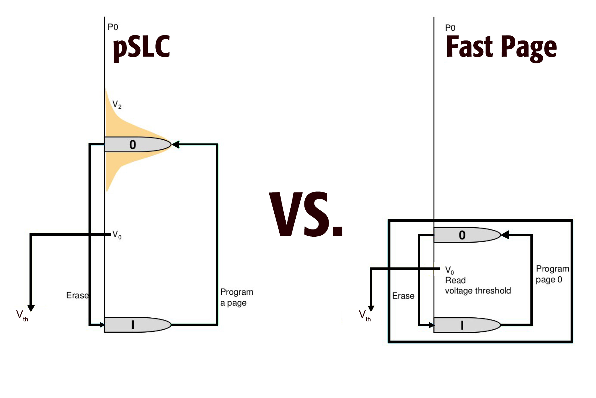 To increase the voltage differences between charge states, the memory manufacturer must adjust the firmware. Unlike Fast Page Mode, pSLC technology requires specialized MLC NAND that supports pSLC operation.