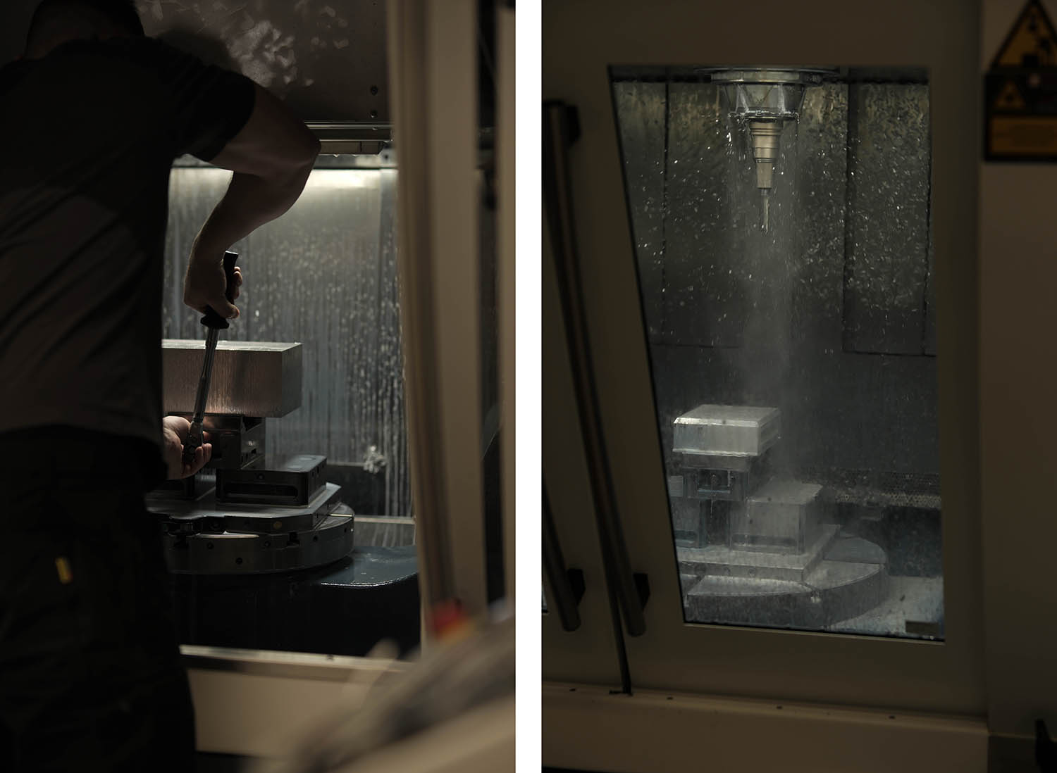During our visit to Rebstein, we witnessed step by step how a Syslogic enclosure takes shape. The ITS team starts by importing Syslogic’s CAD model into their machining program for the CNC milling machine. Milling paths, spindle speeds, feed rates, and tool changes are defined and then transmitted to the machine. The solid aluminum block, serving as the raw material, is fixed in place. Diamond-coated milling tools rotate at high speeds, precisely carving out the programmed contours. This is how cooling fins, edges, and drill holes are created – with tolerances down to hundredths of a millimeter and surfaces requiring little to no finishing.