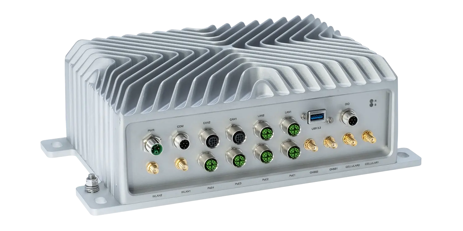 Mit seinen vielseitigen Schnittstellen und der leistungsstarken NVIDIA® Jetson™ Orin NX-Plattform ist der RML A4NX (PoE) für Sensorfusion und KI-Inferenzierung ausgelegt. Er findet breite Anwendung in autonomen und industriellen Fahrzeugen, einschließlich AMRs (Autonomous Mobile Robots), PKWs, LKWs, Bussen, Sonderfahrzeugen sowie Bau- und Landmaschinen.